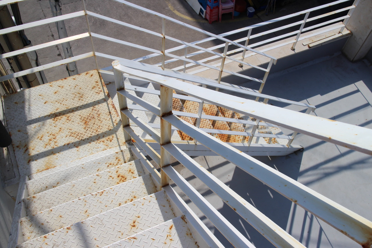 이 카페의 대박 뷰를 볼 수 있는 옥상으로 가기 위해 철계단을 걸어서 올라갔어요.
