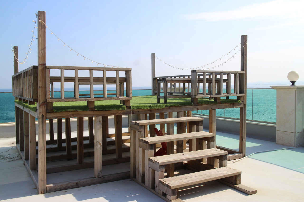 카페에서 마련한 옥상에서 바다뷰를 더 편하게 즐기기 위한 장소가 나타났어요. ㅎㅎ