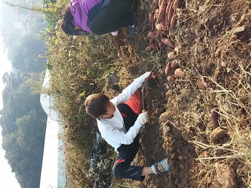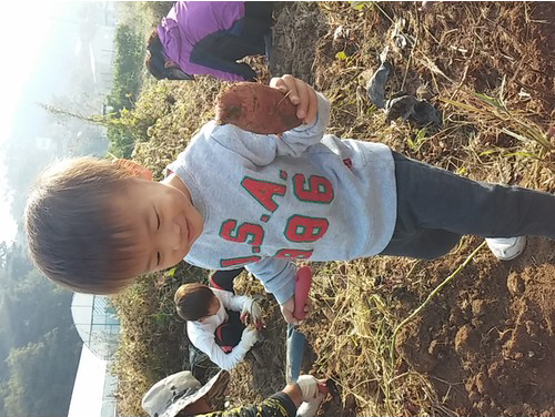 첫 고구마 수확 후 좋아하고 있는 조카의모습을 사진 찍어 보았어요.
