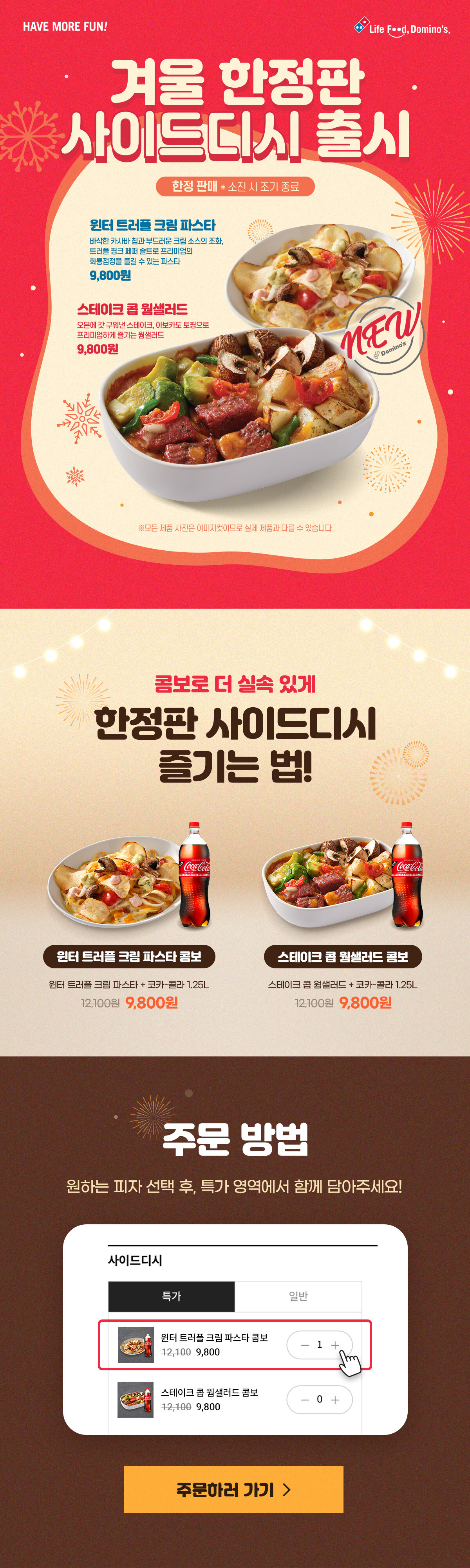 겨울 한정판 사이드디시 및 콤보 특가 출시