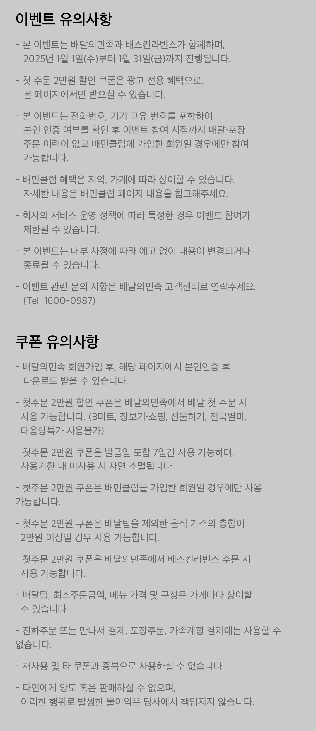 2025년 1월 1일 ~ 1월 31일 >>2025년 5월 배달의민족 첫주문 할인 행사 보기