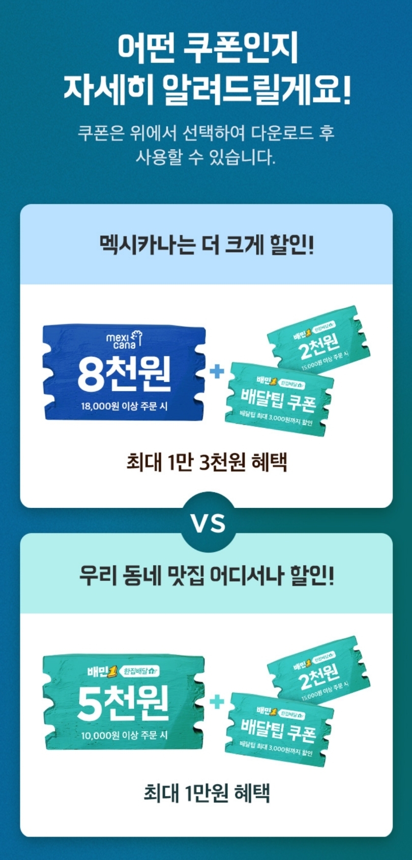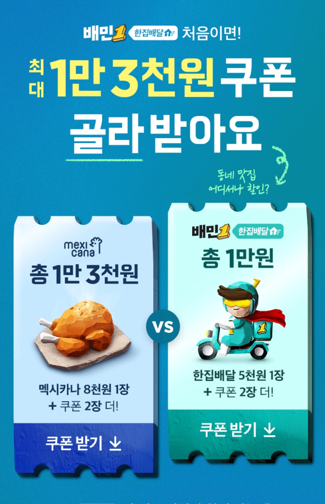 배민1이 처음이라면 두가지 쿠폰 중 1가지 이용 가능