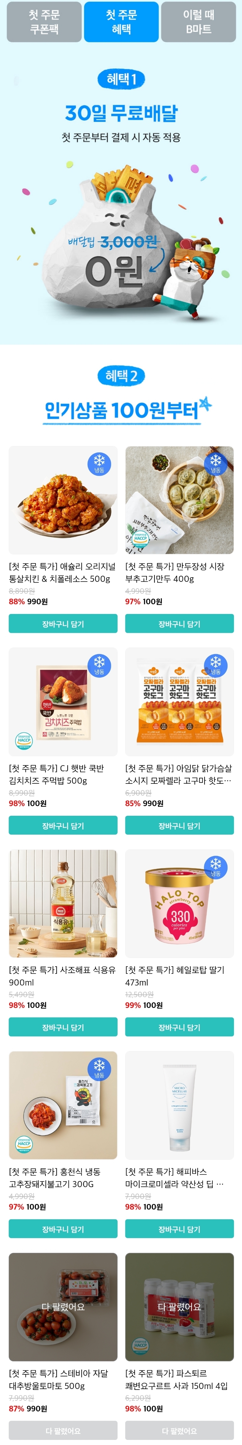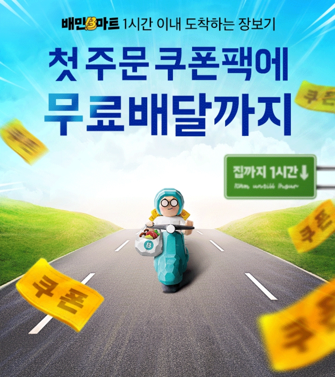 배달의민족 배민 B마트 첫구매 할인 쿠폰, 100원 특가, 무료배달 쿠폰 증정 이벤트 - 식품,건강 >