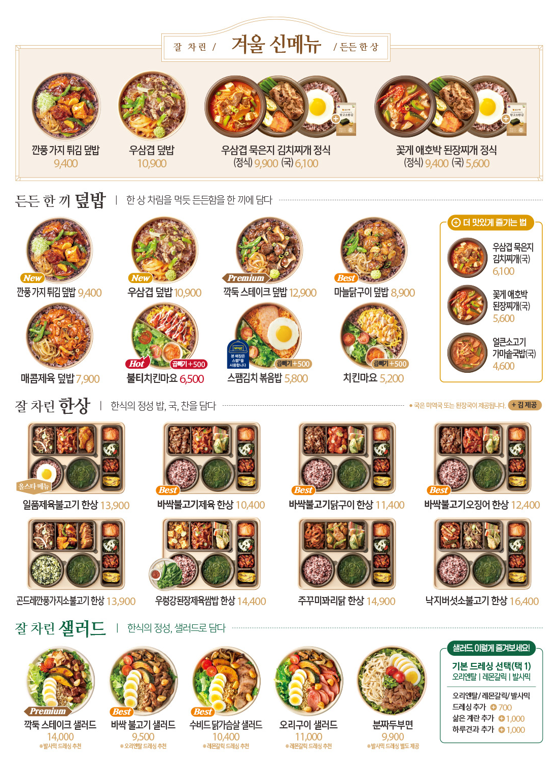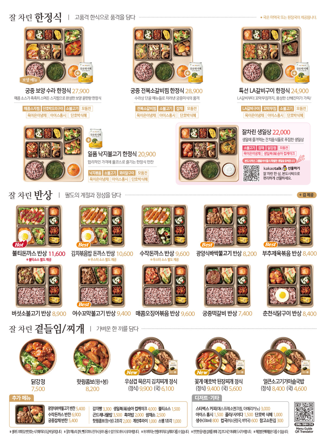 본도시락 메뉴, 가격 [잘차린 덮밥] [잘차린 반상] [잘차린 한상] [잘차린 한정식] [잘차린 소반상] [잘차린 샐러드] [곁들임과 찌개] [음료 및 기타] 이글은 제휴 광고 활동을 통해