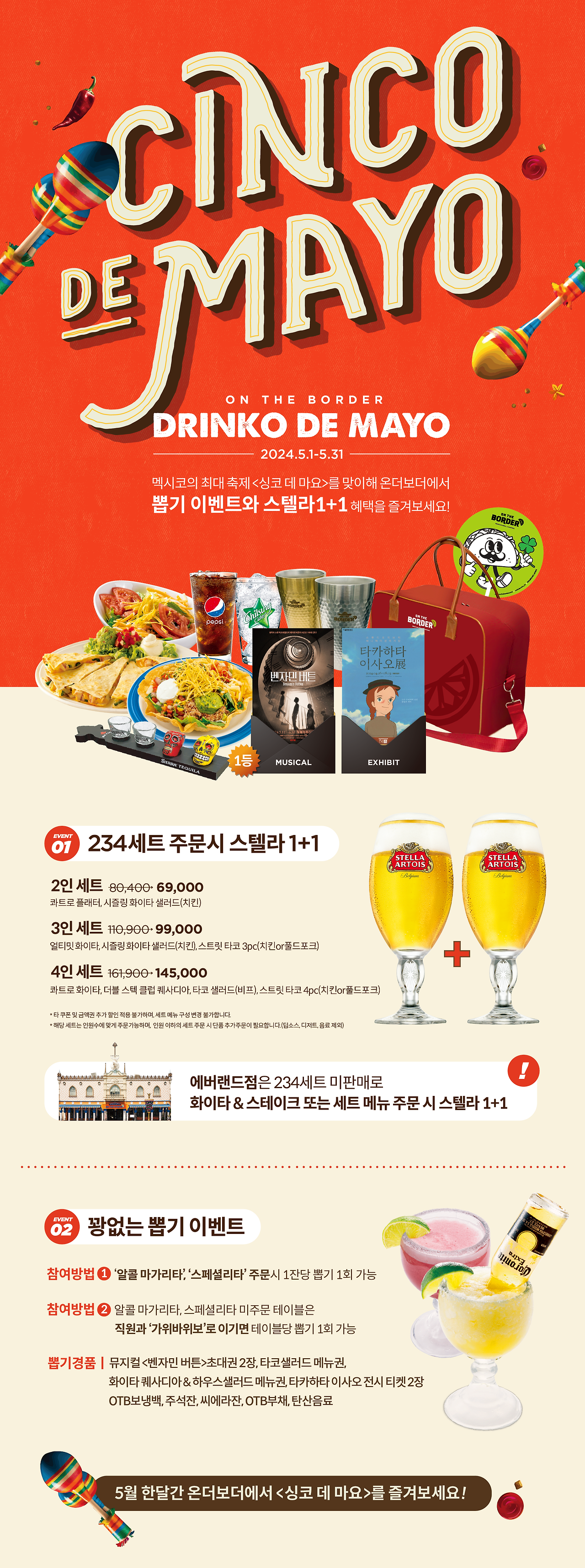 맥시코 최대 축제 <싱코 데 마요>를 맞이해 진행하는 뽑기 이벤트 & 스텔라 1+1 혜택 이벤트