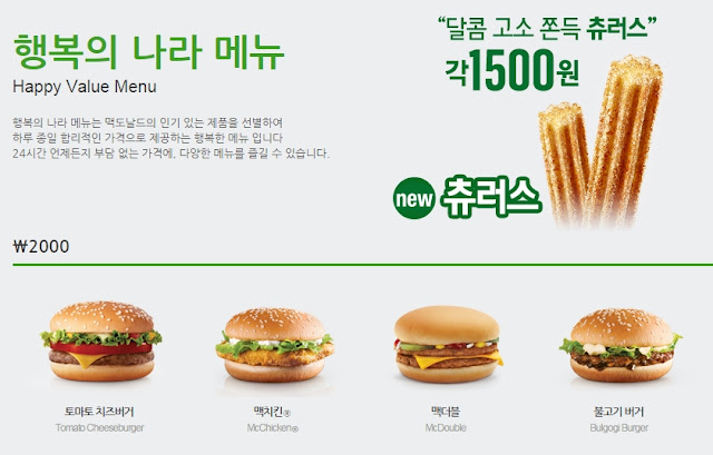 버거, 스낵, 음료 메뉴를 말하는 건데요.