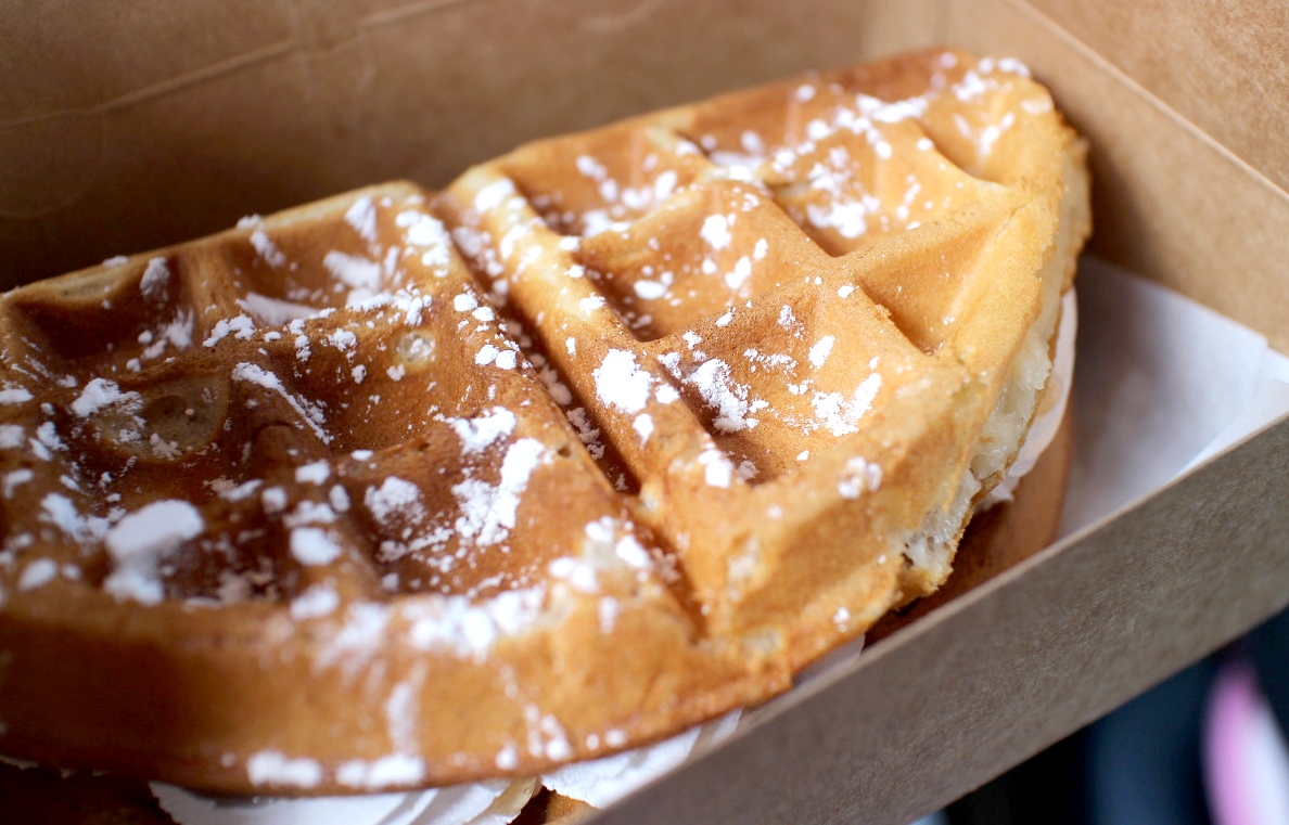 사과생크림 와플이예요. 많이 바삭하진 않고 부드러운 스타일 와플이예요. 생크림도 꽤 많이 들어있어서 맛있었어요. 커피나 음료랑 같이 하나만 먹어도 배부른 정도였어요.