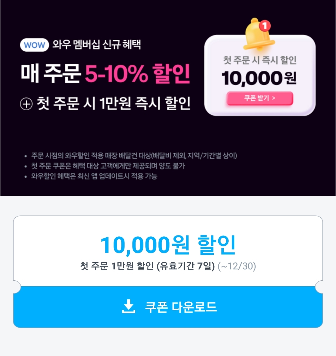| 쿠팡이츠 쿠폰, 할인 이벤트 행사 (0) | 2024.10.15 |