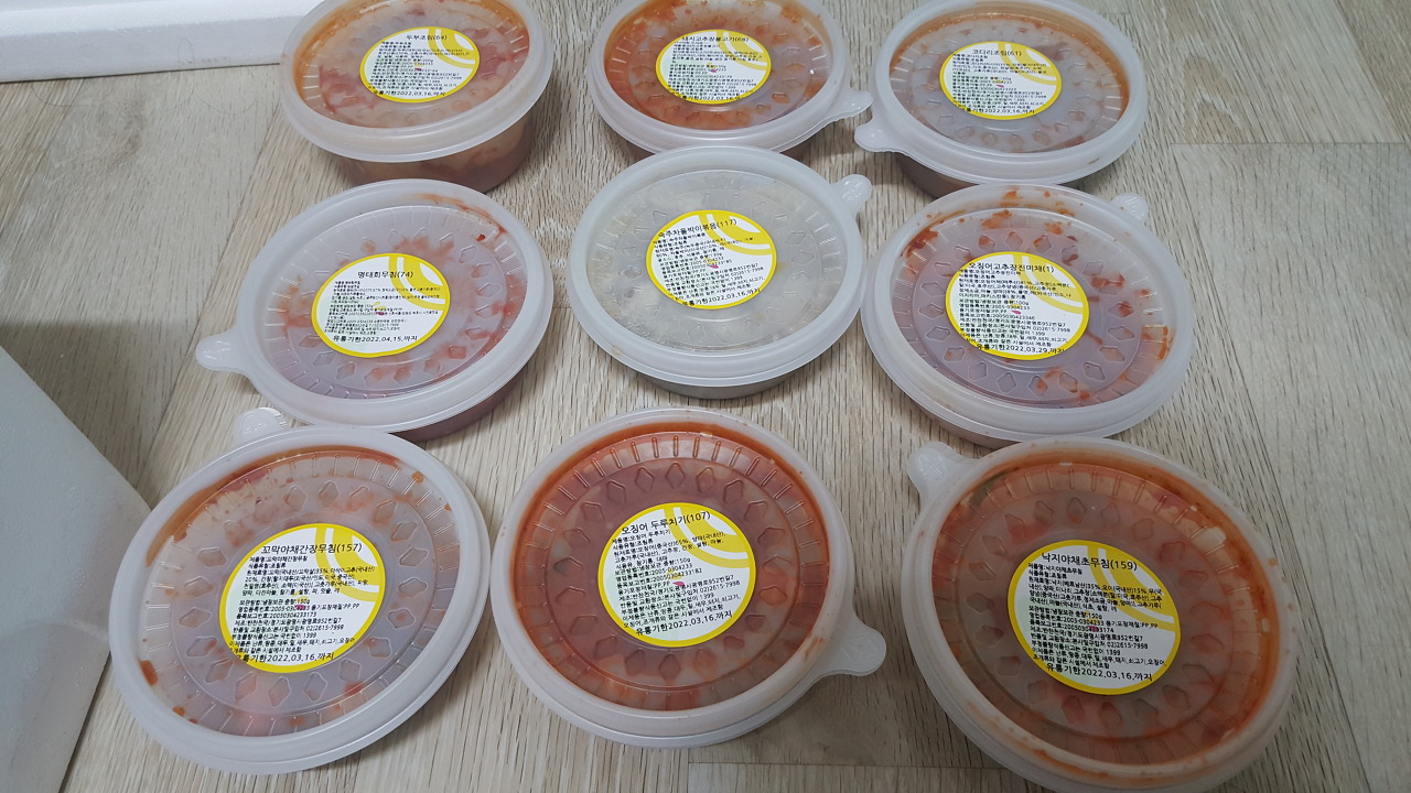 주문한 반찬 종류는 명태회 무침, 오징어고추장 진미채, 숙주 차돌박이 볶음, 코다리 조림, 오징어 두루치기, 꼬막야채 간장무침, 낙지야채 초무침, 두부조림, 돼지 고추장 불고기 이렇게 9가지이구요.