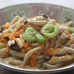 게맛살고추버섯볶음을 해보았어요. 고추는 꽈리고추인데 만들어서 먹다보니 매운게 하나씩 걸리더라구요.ㅠㅡㅠ 게맛살은 길게 어슷 썰어주었어요. 버섯도 씻어서 찢어 놓구요. 꽈리고추도 씻어서 먹기 좋은 크기로 잘라주었어요. 참기름과 식용유를 반반씩 사용했어요. 준비해 둔 재료들을 다 넣고 한꺼번에 볶아주었어요. 간장 2큰술, 다진마늘 1큰술, 조청 1큰술 넣어주었네요. 다들 금방 익는 재료들이라 조금만 볶아주었어요. 다 볶아진 것 같아요. 그릇에 옮겨 담고 깨를 뿌려 주었어요. 짭쪼름한 밑반찬이 완성되었네요.